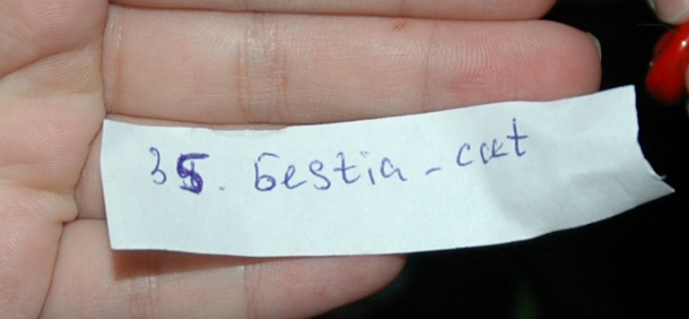Предыстория. Написала на бумажке все ники, аккуратно разрезала по полоскам, сложили в мисочку и стала ждать, пока мой младшенький проснется. Проснулся, даю ему мисочку с участниками, а он мне кучей вынимает бумажки, штук 10 сразу :))) Просила, просила его одну мне выбрать - так и не захотел :( Я думала, ну все - выберу с помощью рендома. Села за комп, и тут подходит ко мне моя радость и дает одну бумажку.........